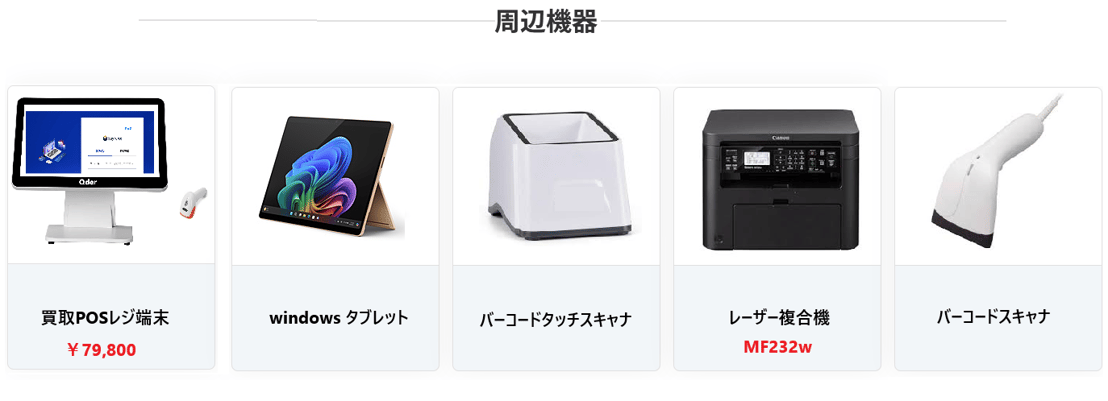 商品買取に関する設定から査定、管理までをサポートする機能群です。店頭買取&郵送買取業務の効率化とAI査定による精度向上を実現します。また店頭買取はバーコードをスキャンするたけで買取申し込み用紙作成&印刷できる
